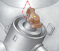 2. Повернуть бегунок, чтобы он был расположен напротив метки на корпусе распределителя. 3. У двигателя рабочим объемом 1,6 л повернуть валик привода масляного насоса так, чтобы выступ на валике был расположен параллельно коленчатому валу двигателя. 4. Если после установки распределителя бегунок расположен не против метки на корпусе, повернуть распределитель и только после этого затянуть болты крепления распределителя. 5. После установки распределителя отрегулировать угол опережения зажигания.