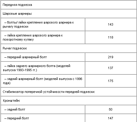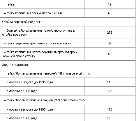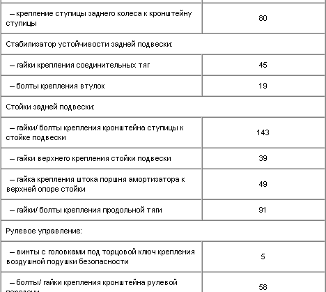 Моменты затяжки резьбовых соединений
